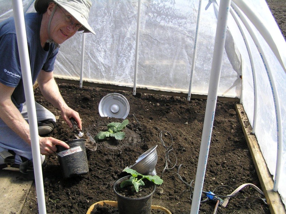 Finally!! Its planting day, as the 1944 Connolly hits dirt. Outside its 60F. I closed up the green house and it rose to 85F inside. Each plant was given a diluted drench of Humate, Azos, Root Shield, Pumpkin Pro, Neptunes Fish, Epsom Salts (magesium) and molassas.