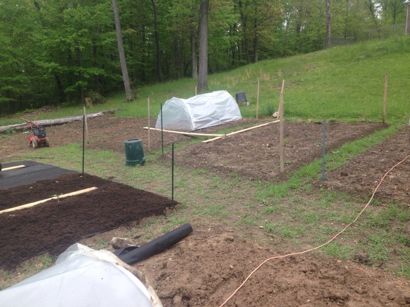 A view from afar, 150 is in top left with the hoop. 2 x field kin plots, also 150 each, to the right of that.
