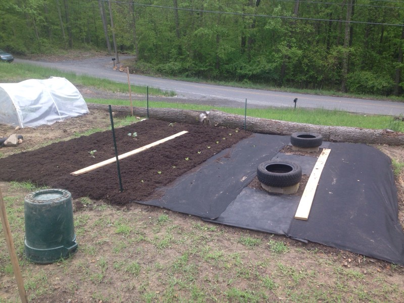 Some Yellow Icebox melons that were a hit last year. To the right with the tires is where I'll plant my lopes when they're ready.