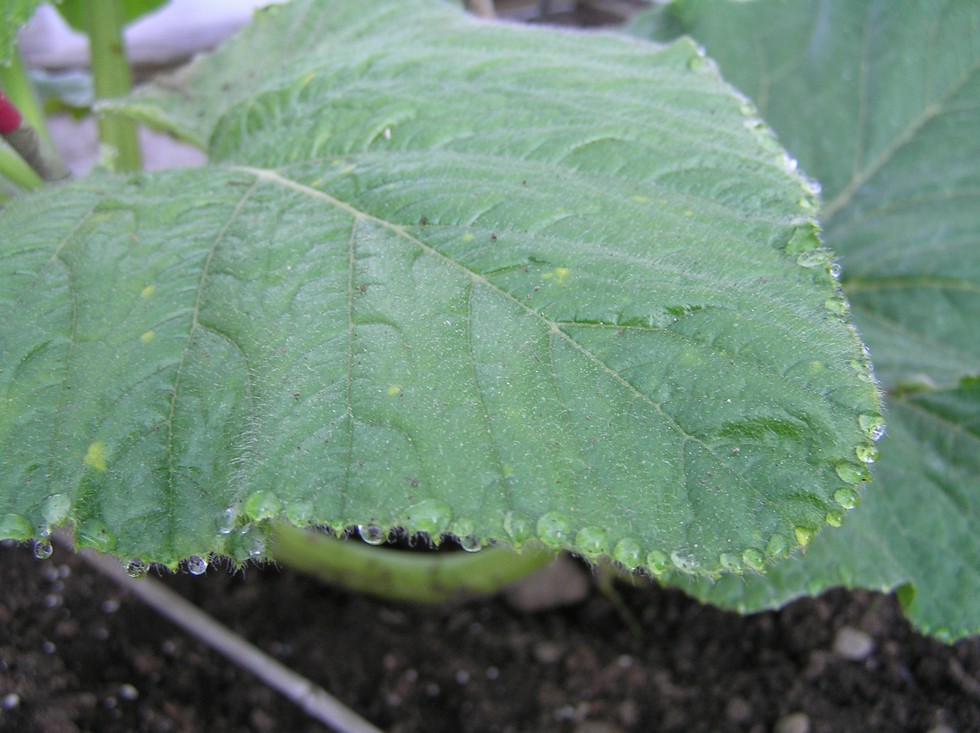 Guttation is a great thing. The leaves on my 2075's were bleeding off too much of a good thing this morning. I Over-watered them last night. My 1944.5 and 1975 Wallace did not exhibit this, cause I did not water them last night.