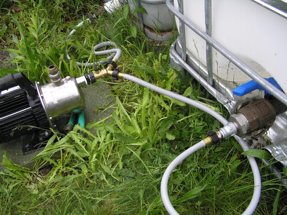 Finished connecting two 300 Gallon Pumpkin water retention tanks together. Now I got to check for leaks