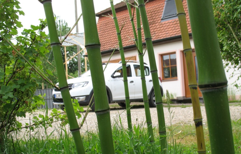 Here you see in the Background the hailnet. Ans also a car. It is a "Sandero Stepway" (model). The older bamboo holm you see in this picture is 2 years old now. All the others have grown this year. (i hope my english is not to bad) --> Germany here..