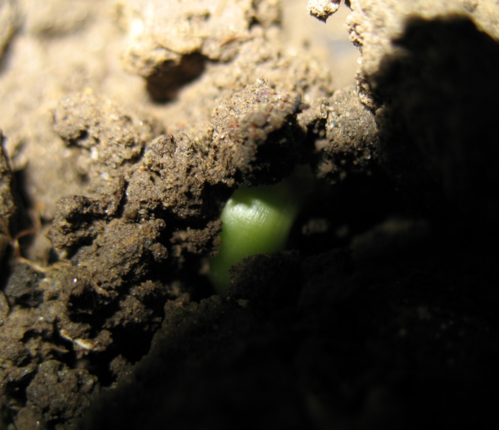 Here is the first one showing up. One of the germination/youngplantgrowing test. To see if the first and second true leave will do fine in another soil.