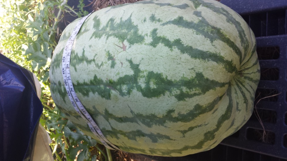 End shot of Kent 350.5 . Definitely a keeper ! See May 19th post of the same melon .