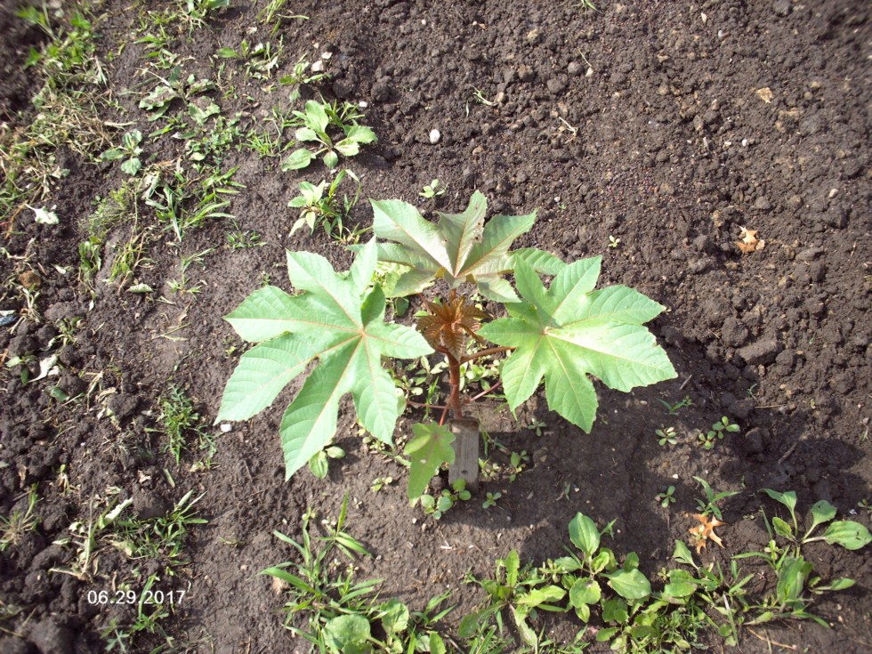 Oldest castor bean plant around my patch. I have others that have sprouted and will take pictures of them.