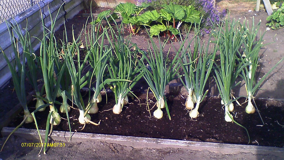 mammoth onions by robinsons farm, lancashire, UK looking good