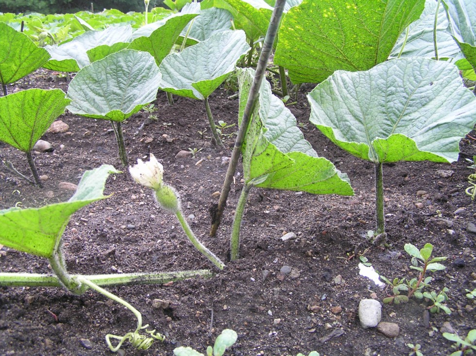 Lots of Bushel Gourds are flowering. I keep forgetting to pollinate them at night. I am so used to morning pollinations, I won't keep any of these. They are only 7 ft out on secondary vines. Plan is to set the "keepers" near the end of July.