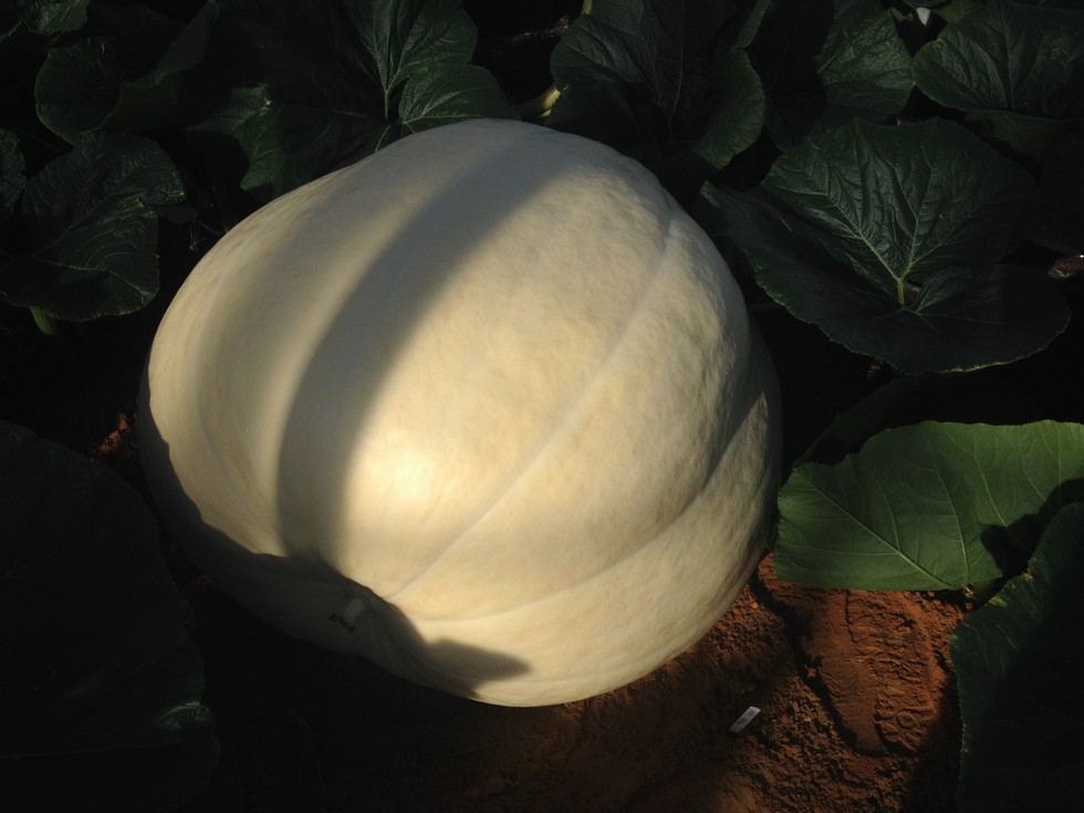 This pumpkin was very close to the star in our patch as on just day 26 tapes 415lbs which is another record for us. This is the one that Stuart thought feels like lead. She's a great shape and has a lot of top quality plant behind her.