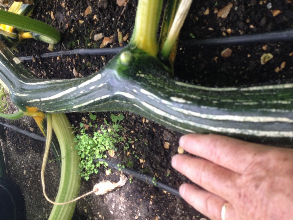 I think this is the stem of the 2252 which is just a great example of what we're after. We decided not to bury the main vine before the pumpkin because of the problem of a rotting vine.