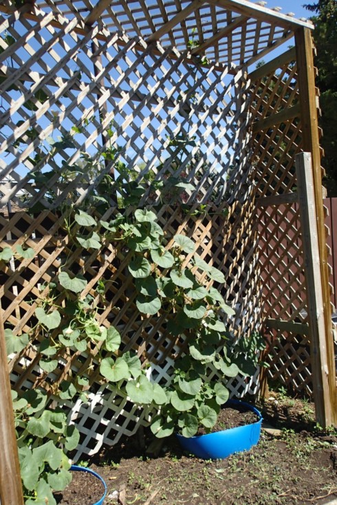 My long gourds at home. Ahead of last year by about 2 weeks. Everything is ahead of last year's pace. It's been really hot the past while and it seems all I do is water.