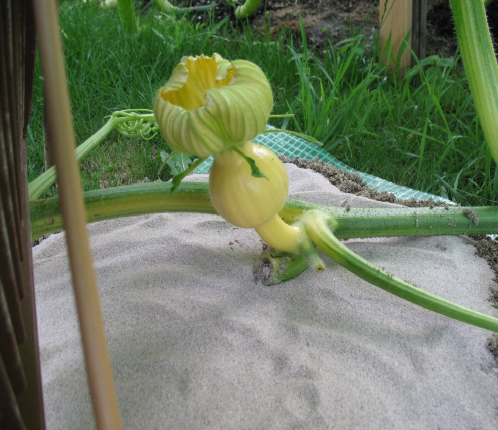Here the 653 Rupf x open day two on a sidetwine. I decide to let it grow. So in autumn i will have two pumpkins on one Plant. So if one pumpkin gets problems in some weeks, then i still have one left that is growing. Time will tell.