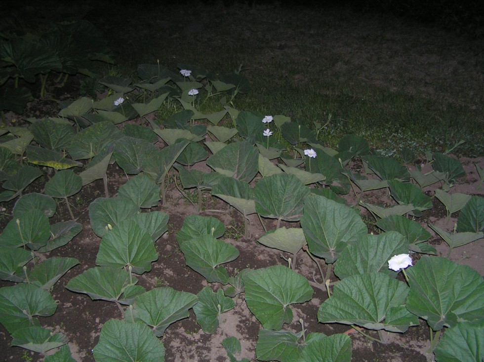 This is fun. I finished pollinating all the pumpkins about 3 weeks ago, now the Bushel Gourds are blooming at night. The plants telling me its time. I counted about 10 Giant Bushel Gourds that will all flower in 3-5 days. This plant is very prolific.