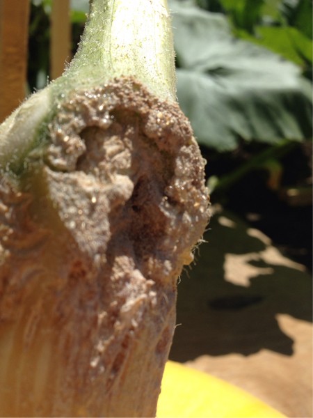 Trimmed with razor to take off the "stalk hood" that was overhanging and got down to just the vine itself. More care will be done next year to complete this the first time I cut away, so the pumpkin doesn't have to heal twice. I like just a dusting of powder versus the paste and packing that some use. Applied in jabbing motion to get deep into nooks and crannies. If you look close, you can see fluid pushing through the powder, I will touch up with more jabs until it stops bleeding through, then apply a fan. I should have waited until the evening to do this just as positioning vines after heat stress so less snapping occurs, but sometimes you forget your own advice until you see it and remember you didn't want to keep doing that...