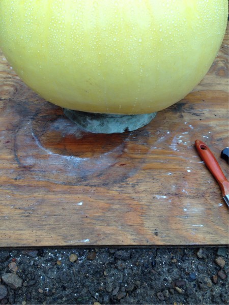 Based on the continued splitting and stem stress in the previous picture, back and to the right to increase the incline. Now that she is heavy enough to hold herself in place, she was rotated about 90 degrees counter clockwise to start to un-twist the vine from when it layed down.