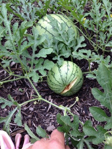 MAN DOWN! MAN DOWN! Had these yellow petite melons next to my 296.5 Barbers and this little guy wanted to run with the big girls. Rain really beat me up this week...