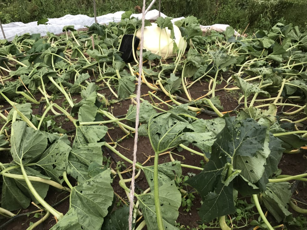 So this happened yesterday. I've been growing these giants for 10 years now and have not had an in-season hailstorm before now. The hail was small so the fruit are intact, but the leaves in my patch are 75 to 80 percent leveled. This is the worst one, the 1843 Werner B. It also rained 1.7 inches in 30 minutes so there are washouts through the vines. I'm going to give it a couple days to see what bounces back, and then clean out the irreparable damage on the weekend. Was having such a good season too. I was just messaging with Jeremy Terry the other day about how cruel this hobby can be. All I can do now is help them out the best I can and see what comes of it.