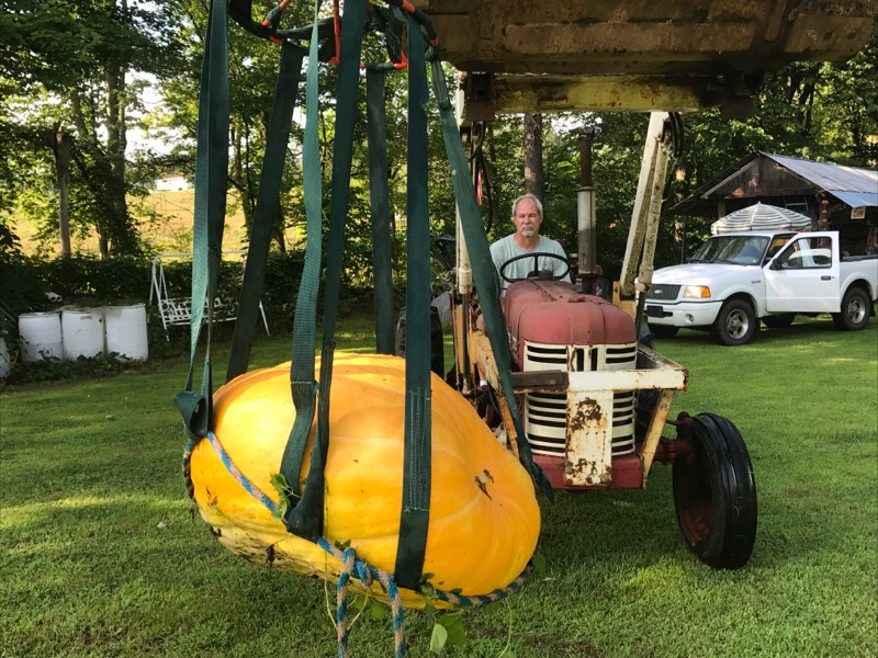The Wayne County Fair is here !! A sign that summer is flying by. The first major pumpkin contest is part of the fun. Andy tried out a new tractor to take our entry in. International "Harold", was up for the challenge. The 701 Box is a good seed and is throwing nice shaped orange pumpkins.