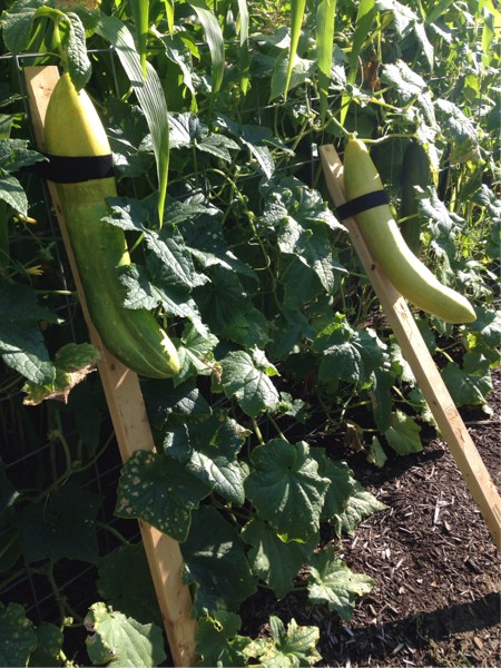2 cukes in the middle finishing first fruits, should both be in similar range of my other 2.