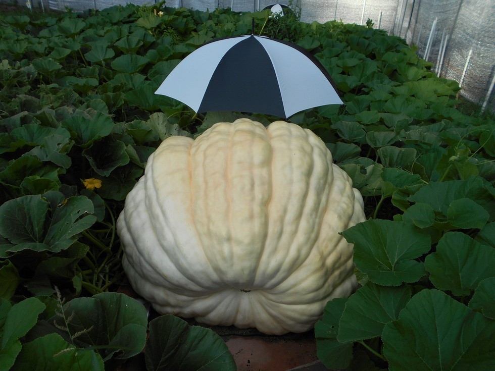 Another measurement round and again this is a consistent producer. Overall the shape has held together and the color is still as white as it was last go around. While some of the ribs are developing, there is no external evidence of any sag lines so I think this pumpkin has a good chance of making it to harvest time. Since this is an unproven seed it is always interesting to see what it produces as sometimes these seeds can offer a pleasant surprise by seasons end.