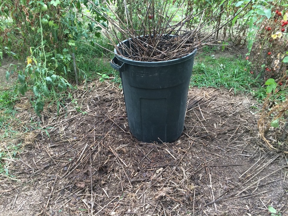 This is the other source of compost brown material I am using this year. This was a compost pile for the last 1 1/2 years. I raked up the course material and used it in the compost trench as well as on top of the pile. This will provide some great active bacteria for the new trench pile.