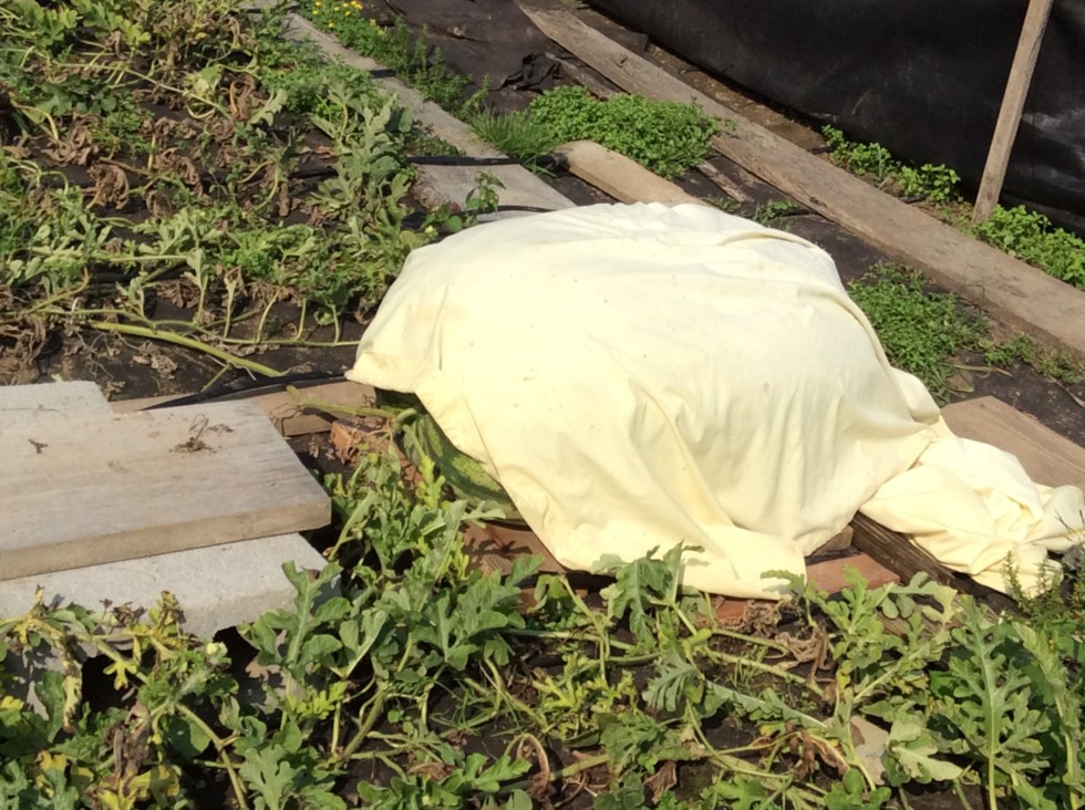 This melon is bigger and is getting closer to the State record every day. It does not have a flat top, so i am hopeful :)