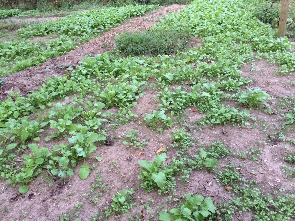 Had a nice rain that brought up the rest of the cover crop seedlings and settled the compost area.