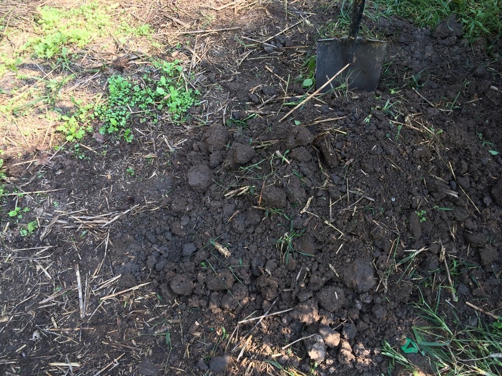 The original dirt added on top of the compost in the hole. This area had tons of earthworm tunnels when I dug it so the worms should be feasting now!