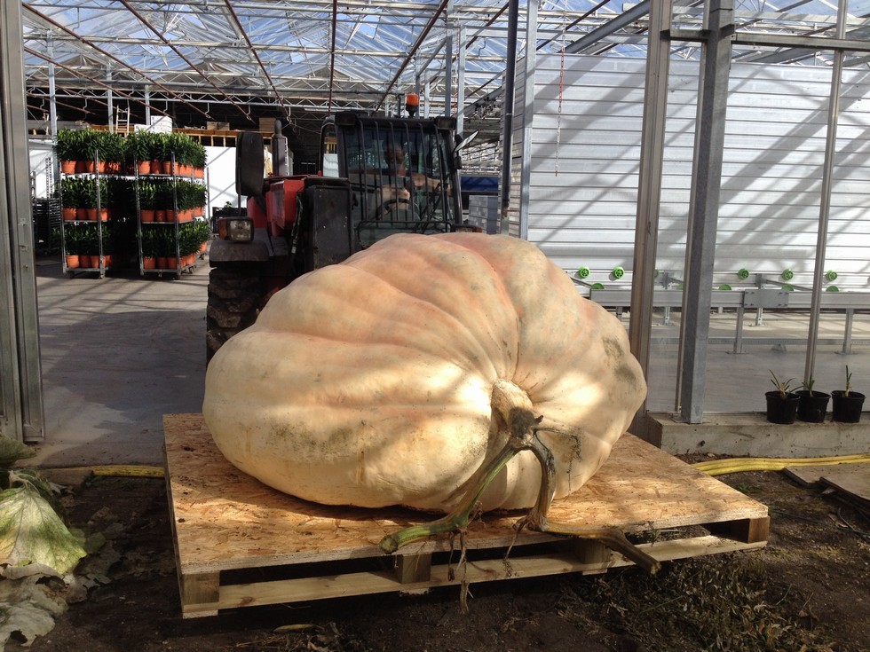 Stuart is taking our other 1949 to the French weigh off tonight and it is a seriously big pumpkin. We've purpose build pallets for all this years pumpkins and now matter which way we turn them the pumpkin is hung over the edge of the trailer.
