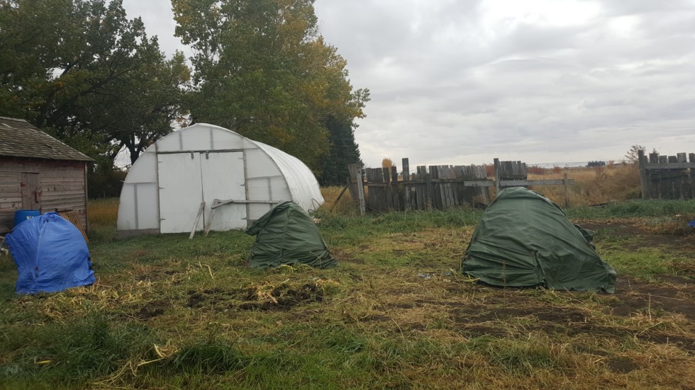 The farm patch today. The before picture. Very nasty weather is coming tonight. I can't get my pumpkin and Alex's squash out until later this week. They are all bundled up for the foot of snow and strong winds that are on the way tonight. Warm and sunny starting Tuesday...we hope