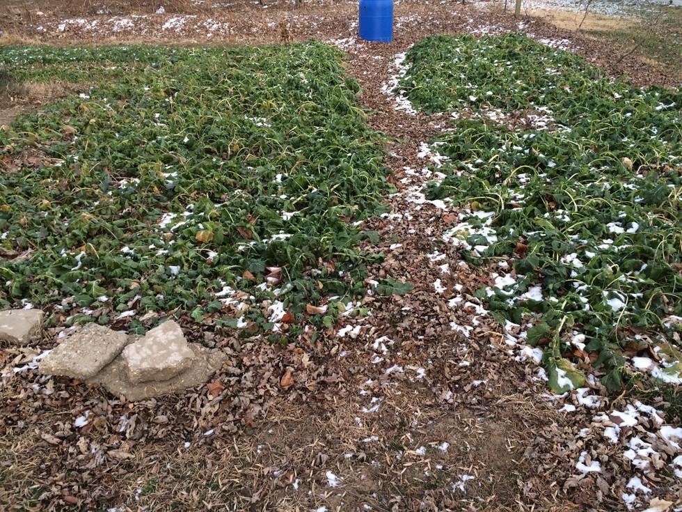 Temp dropped to 3F last night. Should be enough to knock out the brassica part of the cover crop. I scattered some daikon radish seeds into the foliage a couple weeks ago so the brassica would cover them when they died back and hopefully they sprout early March. Annual rye and clover should have survived to take over as main cover crop. They have been hanging in the shadows beneath the brassica.