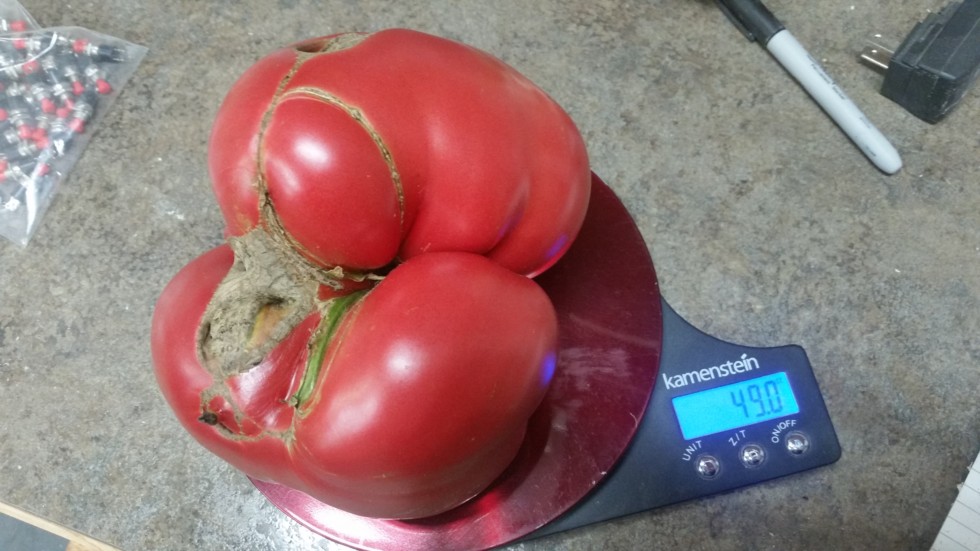 On Tuesday, Dan Sutherland emailed me his entry for this years Winter Indoor Challenge. He continues to set the bar high for the rest of us. It weighed 3.06 pounds (49 oz) and measures 20.12 x 18.5 x 13 for an Mfactor of .00064 . I have discussed with him why his Mfactor is so high as compared to mine. He is not sure. We have narrowed it down..it is not genetics. His best guess right now is it might be biological activity. Great job Dan..I am still working on catching up. Current leader board: Dan Sutherland 3.06 pounds, Robert Borgers 1.67 pounds, Chris Brown .70 pounds (11.18 oz) with hopefully many more tomatoes yet to be weighed. 31 days left to go.