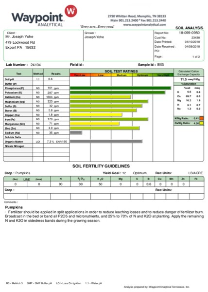 Soil test results came today. Big patch.
