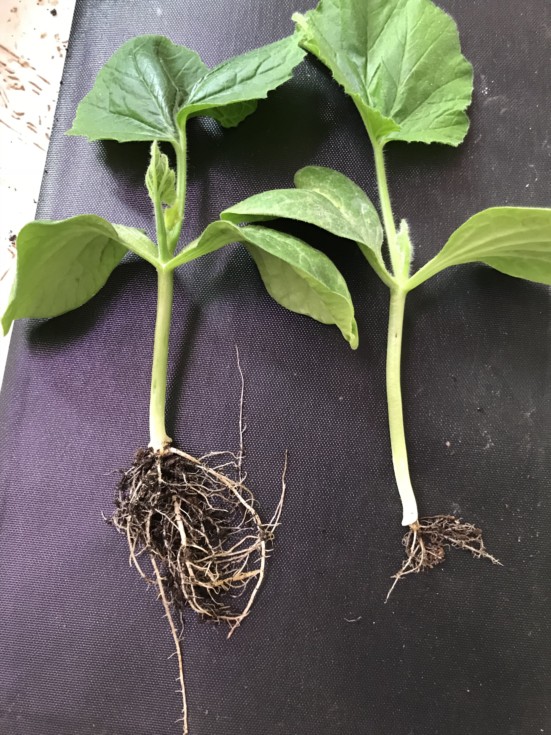 Some other photos for my fellow pumpkin addicts. I pulled these weaker plants out and was surprised by the variation in roots. It could be genetic. Presumably the plant on the right would have wilted on a sunny day... whereas the other might have been prepared for adversity. But on top they looked very similar.