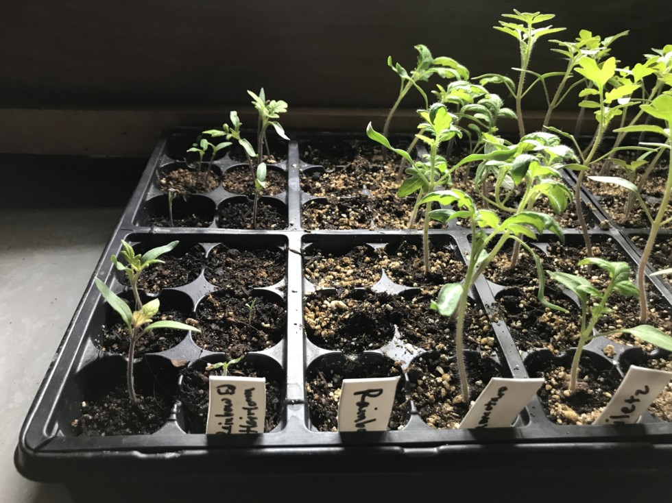 Here there�s a row of duds (or I forgot to plant the seeds) but ignoring that one row... see the horrible (old disease-infected and highly acidic?) potting mix on the left? And the new sterile black gold seedling mix on the right? I needed a small amount of dirt to complete the tray so that�s why I added the dirt that I suspected was no good... (again, it grew the unhealthy plants in the left two columns).