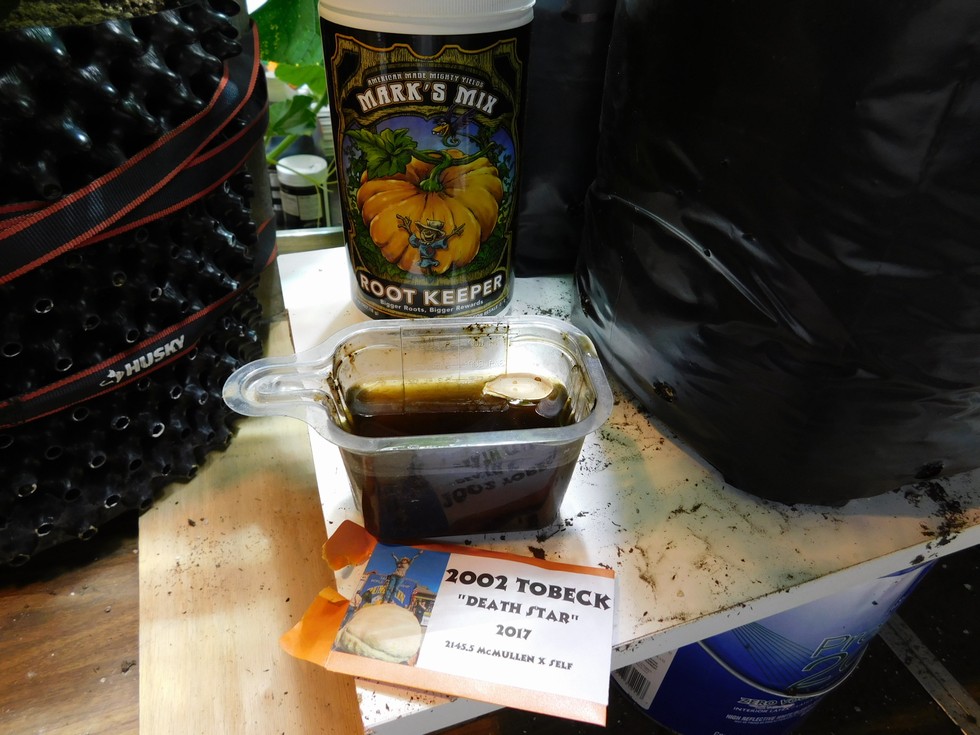 Soaking a Cindy Lou Who!! for a good friend who wants to grow it.Never saw the movie Star Wars so I will go with the movie I did see Cindy Lou Who.lol After all, all pumpkins are girls we all know that as the male flower never becomes a fruit.So I never met a girl named Death Star. Not sure that I really want to.lol Its all good!!!