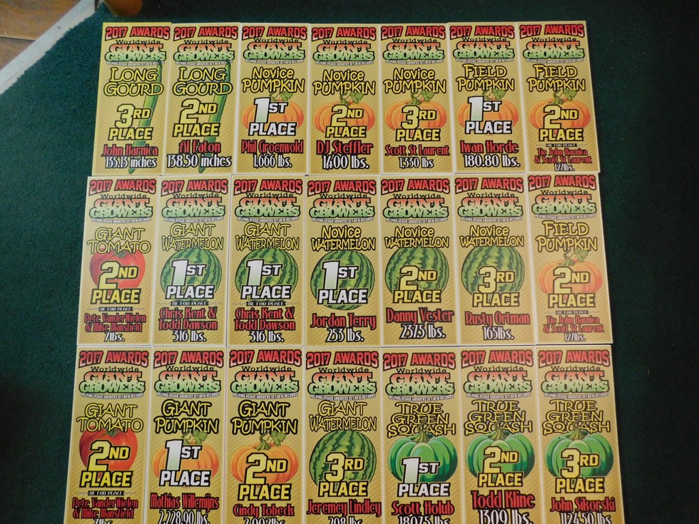 I finally met up with my logo man.Sorry for the delay folks. This will be the craziest busiest year of my life bar none.He opens at 10 am. My new sales job puts me at appointments starting at 10 am across parts of 5 county's.lol Making the transition to from remodeler to retail plus will grow 2 plants this year in the Kin Caves & 1 WR 2118 Jutras SQRASH!Congrats to all if you see a typo let me know.I have to have a few more made anyhoo. I see Marvins is not here. I will have a special one made for his wife Elaine & kids to keep,US RECORD 24 foot sunflower! Rock on Marvin!!Pete V already has his 143 Long gourd 1st place.Congrats to AWL & thanks for growing with Mark & Jackson