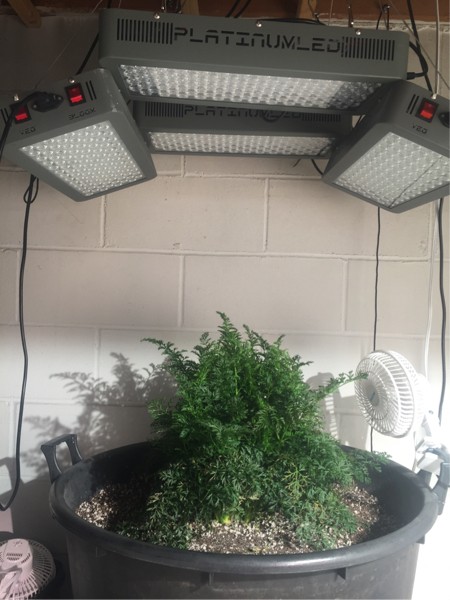 Running now 900 watts of blue veg spectrum lights over the indoor carrot. Looking good so far, I can see the top of the carrot starting to form..it might be big.