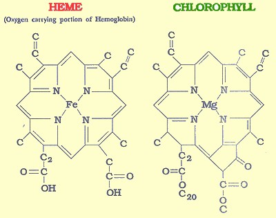 Oh boy. I sure don�t know much! Never knew we were strangely similar to plants... heme is part of hemoglobin and look how similar it is to chlorophyll. Plants create energy and the same molecule they create energy with helps us burn that same energy. Wow�real life is stranger than any fiction!!!