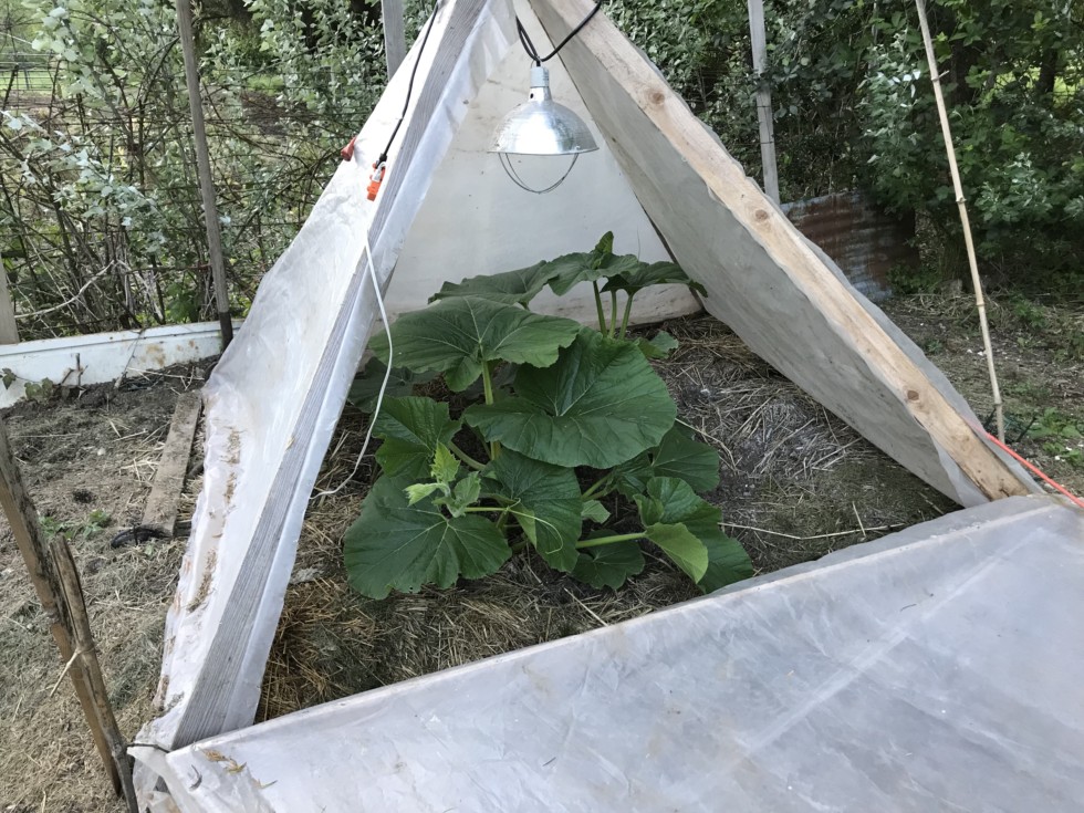 Awesome start here. Unknown seed. Might be a squashkin. Just had to show you guys that even a blind squirrel can find a nice big acorn sometimes. Yay me! I believe I can do even better next year...!