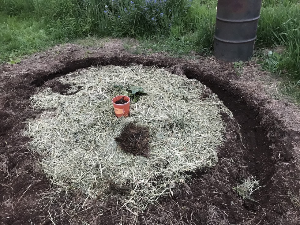 The moat is to monitor for mole activity. Only finished half the moat. I�ll have a couple hundred feet of trench dug everywhere just to monitor for moles. To make the moat I loosen the dirt with the rototiller then use it to fill in the raised beds. I throw some potatoes in here and there. It�s too much work. I�m a couple days behind on some other work.