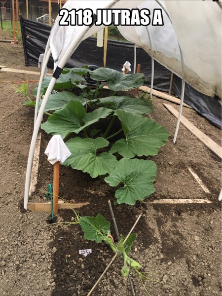 So excited to be growing this seed. Two of them actually. This is 2118 Jutras A. Had to build dirt up near the wooden frame to help the plants get up and over.