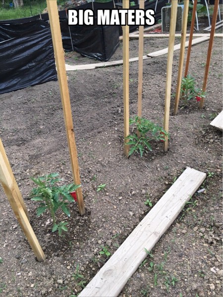 Big tomatoes. Doing okay I guess. Don�t see any blossoms yet.