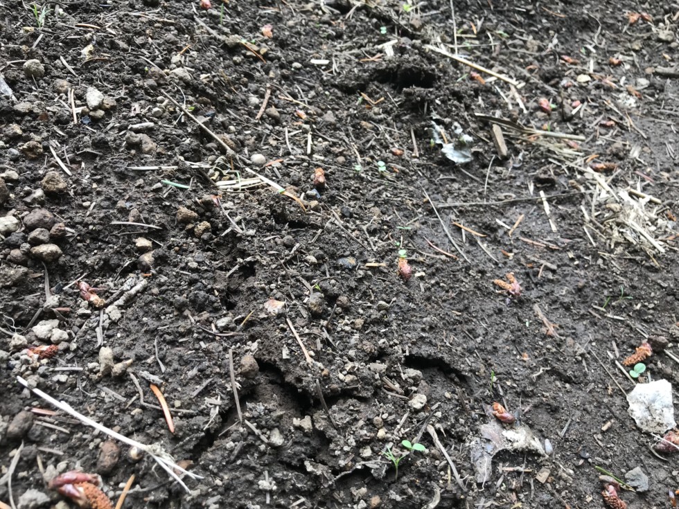 The reason the plant is wet and greasy too is because I emptied an entire container of Sweeney�s castor oil on it to try to drive the last mole(s) out. With thick straw everywhere and baby-sized moles it�s hard to find them but I can still find them by covering everything with a layer of fine dirt, watering, then looking for cracks. It�s tedious setting traps every day and hopefully the greasy mole repellent does not harm the plant at all. I also have an electric buzzer type repeller but it really only works if they have somewhere else to go where the food is equally plentiful. They have been enduring the repeller buzz noise this year, unfortunately.