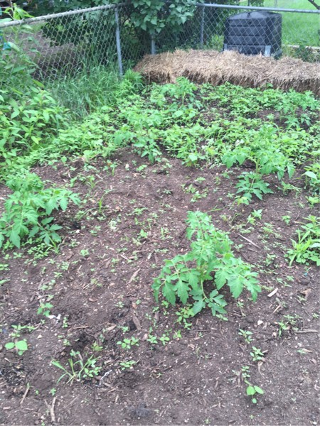 Six tomato plants in my garden so far, tucked into a shady corner..I might have weed one of these weeks. I am handicaping myself in the company competition.