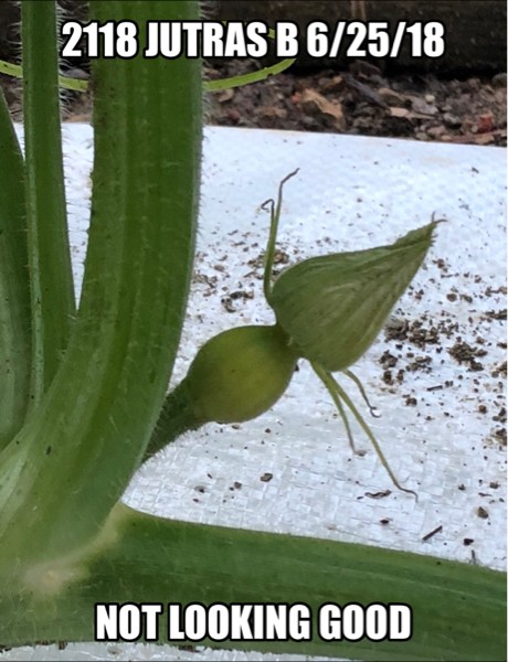 No pollinations took on my 2118 Jutras B plant. Next one on the main not looking good. Kinda yellowish.