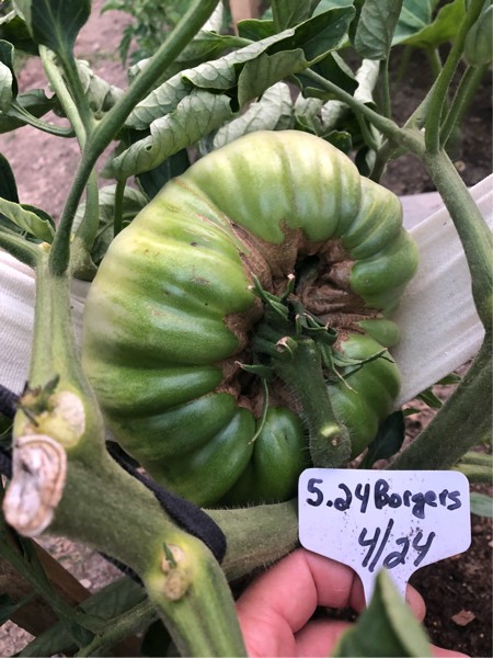 Best tomato as of right now. Garden looks dry even with the sprinklers going while I was away. Everybody gonna get a big drink in the morning. Then spray insecticide and fungicide in the evening. Back to ferts this weekend.