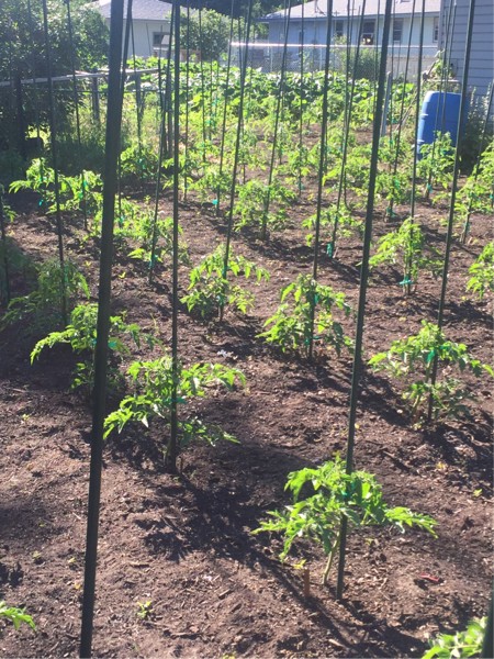 Started to buzz the first of the megablossoms. I really need days to be about 3 hours longer. Hoping this weekend for the chance to put in my irrigation system. Tomatoes have been running dry since I transplanted them...that may not be a bad thing. I need a method to feed them now..with deep roots. I am betting I can keep the title Mr 3 pounder.