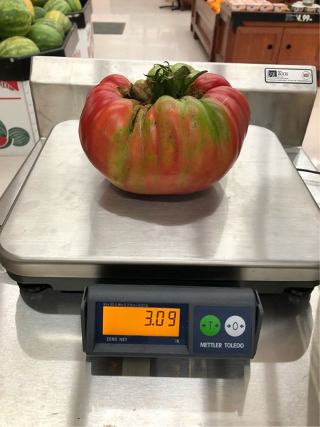 Picked my early 5.24 Borgers tomato today because I noticed the skin starting to crack. Got it officially weighed on a certified scale at the supermarket. They had to get a managers approval. I believe she thought I was crazy. Oh well. My first entry for team 11. Hope I can improve on this weight but at least wanted to make sure I got something entered. It�s John�s and Cory�s turn now.