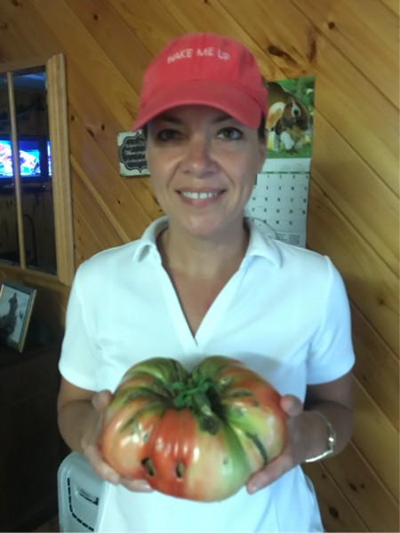 Val doing her tomato pose.