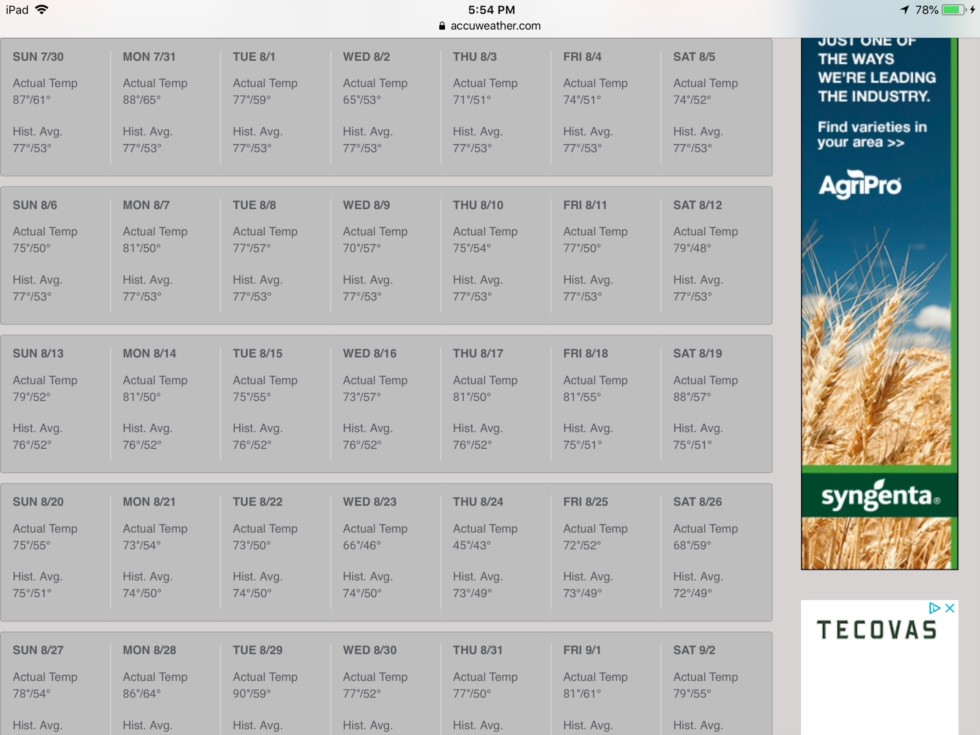 2017 August temperatures, I�ve bounced this against the dates of my kin�s last year and I�ve noticed the difference in weight gains during low temps. Additionally I�ve noticed that it takes an additional 24 hrs to see that difference. We have such large fluctuations in both daytime highs and night time lows. On top of that it�s often a 20 degrees difference in two days. Any comments?
